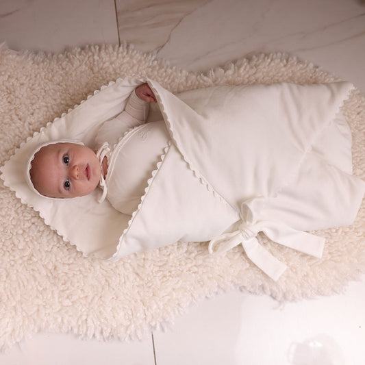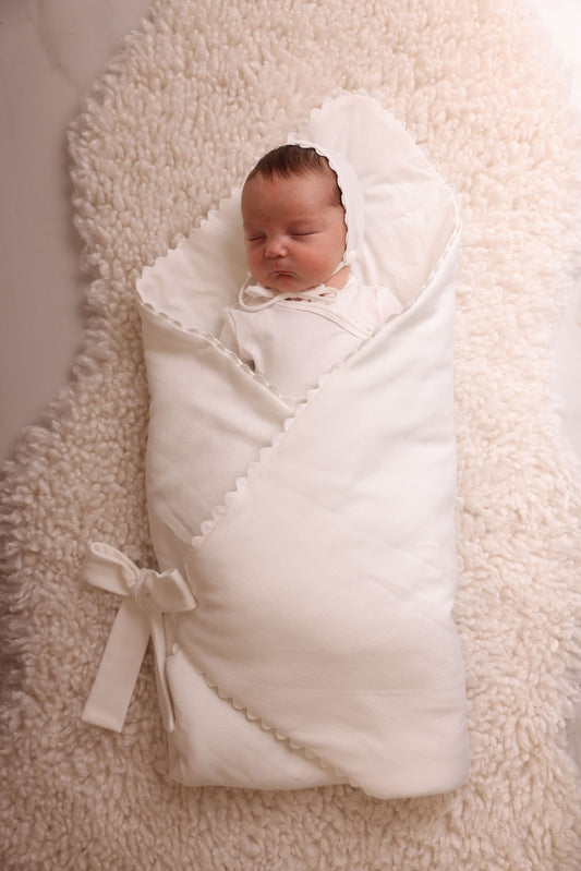 Wrap w/ Chiffon Ribbon Footie, Bonnet and Blanket