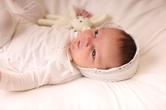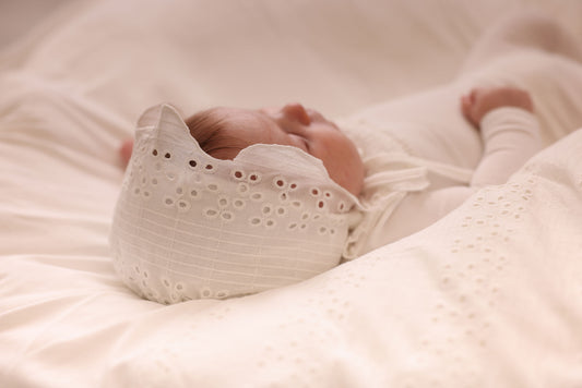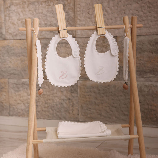 Eyelet Ruffle Bib Footie, Bonnet and Blanket
