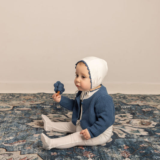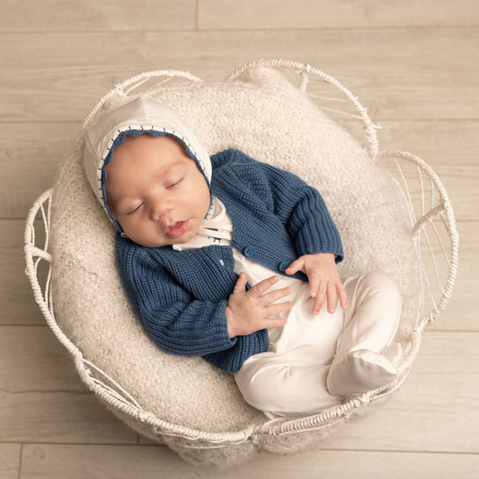 Yarn Trim Footie with Bonnet & Knit Sweater Blue