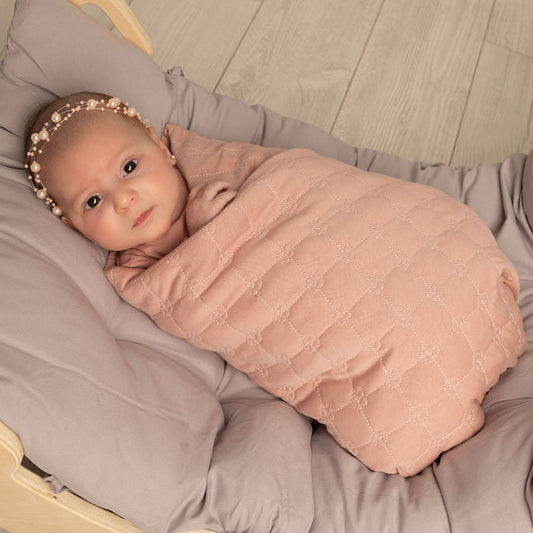 Eyelet Wrap Footie and Hat Set with Pink Picot Stitch