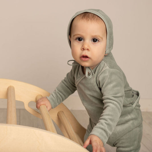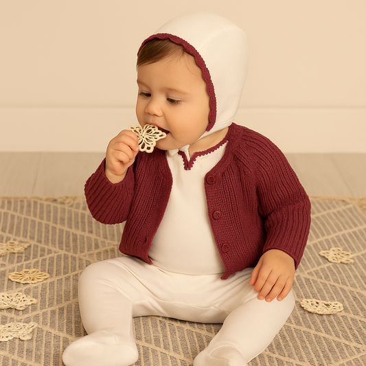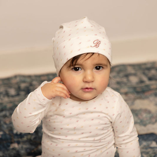 Yarn Trim Footie with Bonnet & Knit Sweater Rose