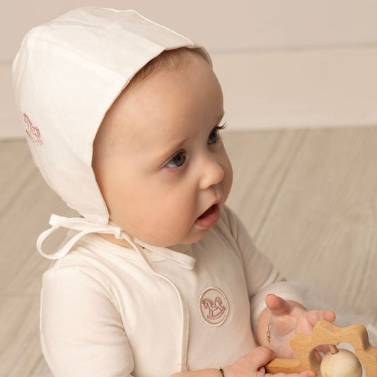 Linen Pink Logo Footie, Hat and Blanket Set White