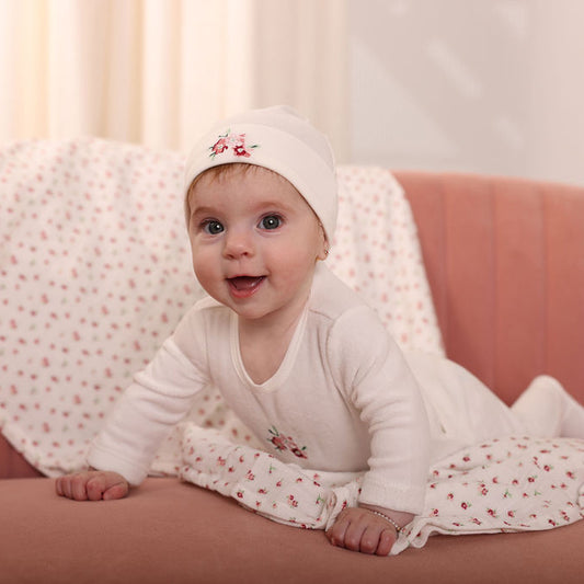 Little Embroidered Flower Footie, Hat and Blanket Set