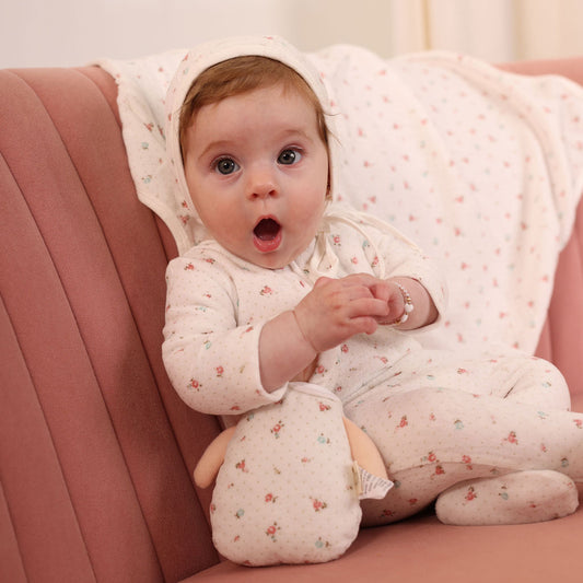 Floral Footie, Bonnet and Blanket Set with Front Gather