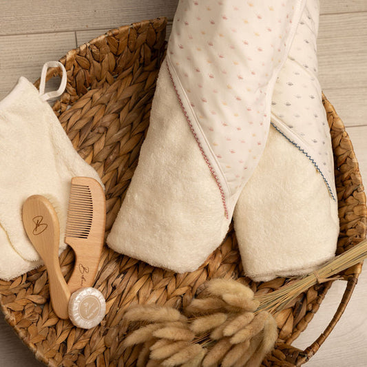 Hooded Towel with Pink Floral Muslin Binding