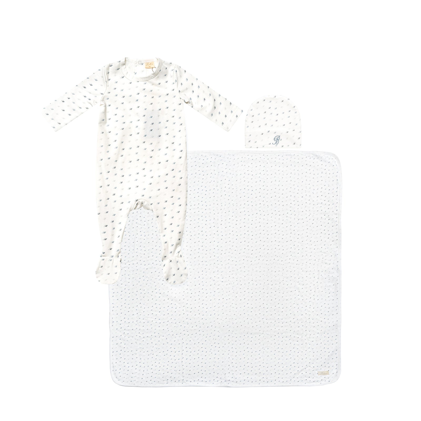 Crafted from gentle, breathable fabric, the footie keeps baby comfortable all day, while the hat provides extra coziness for strolls or special occasions. Perfect ad a coming-home outfit or a thoughtful baby gift, this set blends everyday comfort with timeless style.