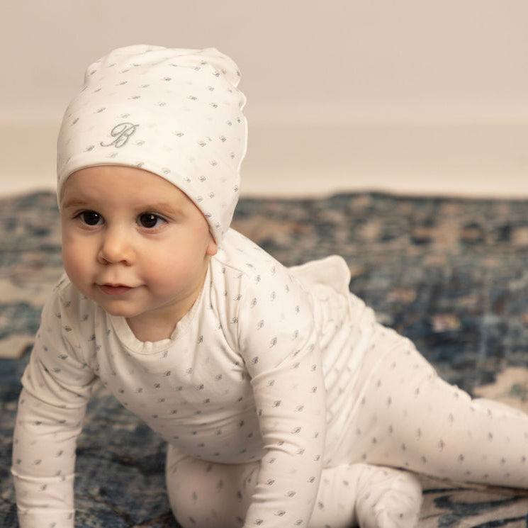 Crafted from gentle, breathable fabric, the footie keeps baby comfortable all day, while the hat provides extra coziness for strolls or special occasions. Perfect ad a coming-home outfit or a thoughtful baby gift, this set blends everyday comfort with timeless style.