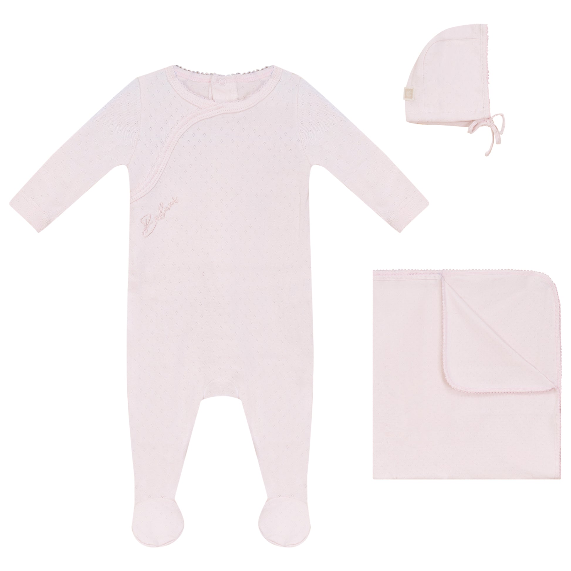 This footie features a delightful pink fabric, perfect for keeping your little one cozy and stylish. The eyelet detailing adds a touch of elegance, while the footie design ensures comfort during sleep. Ideal for both lounging and bedtime, these pajamas are a must-have for any baby's wardrobe.