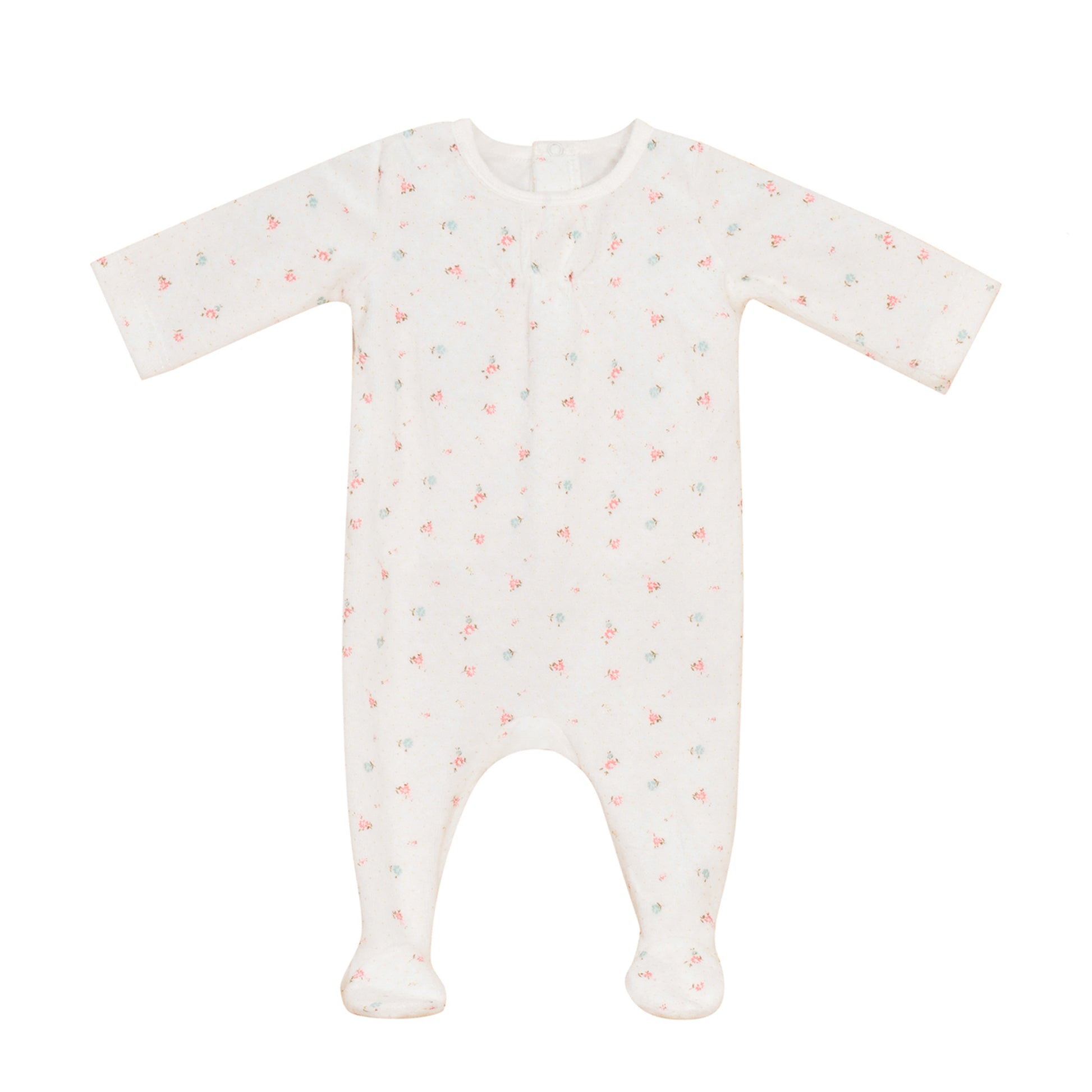 This adorable footie features a charming floral pattern, making it a perfect choice for any little one. The velour fabric is incredibly soft and comfortable, while the footie design ensures that baby's feet stay warm and cozy.