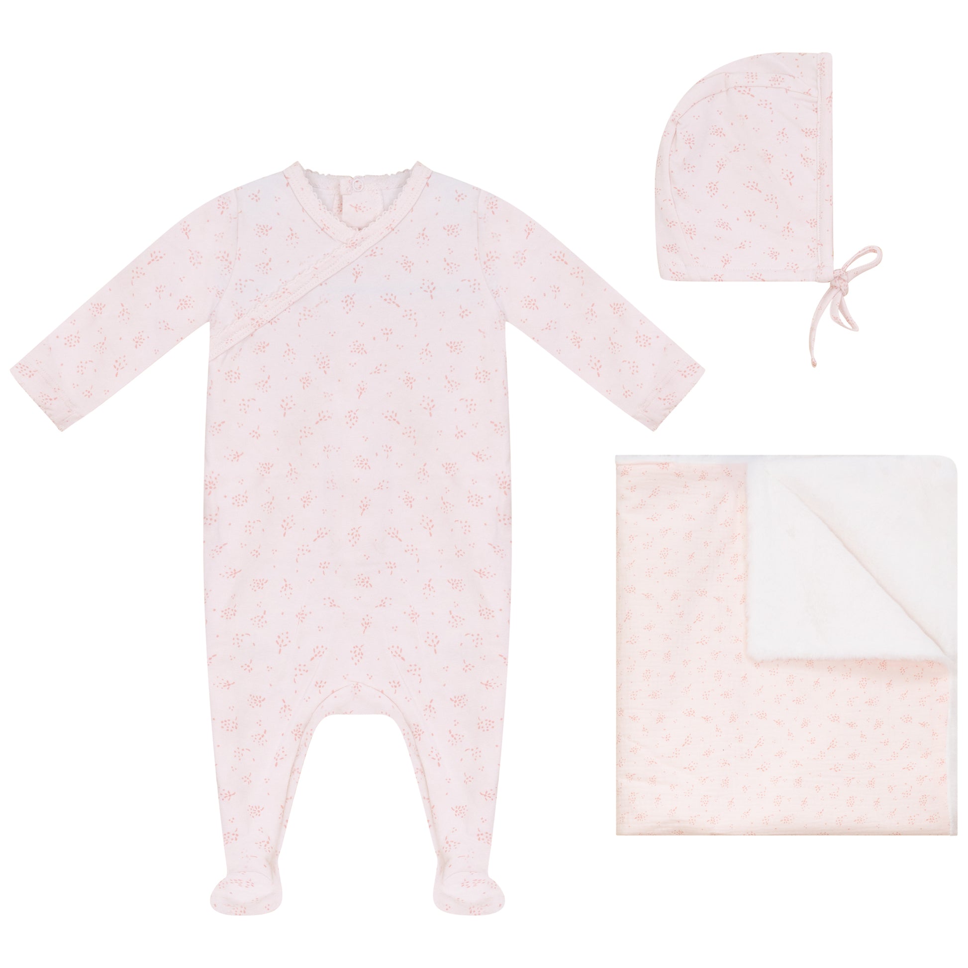 This adorable baby's pink footie features a charming pink flower design, perfect for keeping your little one cozy and stylish. Crafted from soft, breathable fabric, it ensures comfort throughout the night while providing full coverage with its footed design. Ideal for both playtime and bedtime, this footie is a delightful addition to any baby's wardrobe.