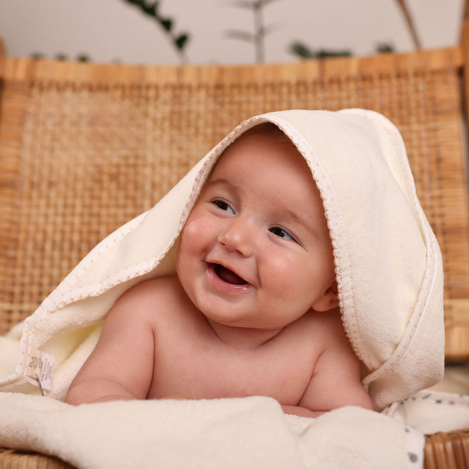 Hooded Towel with Dot Binding and Picot Stitch