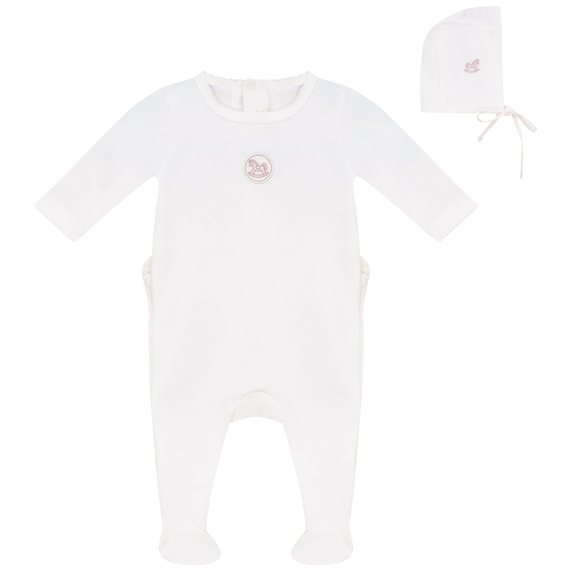 Linen Pink Logo Footie and Hat Set White
