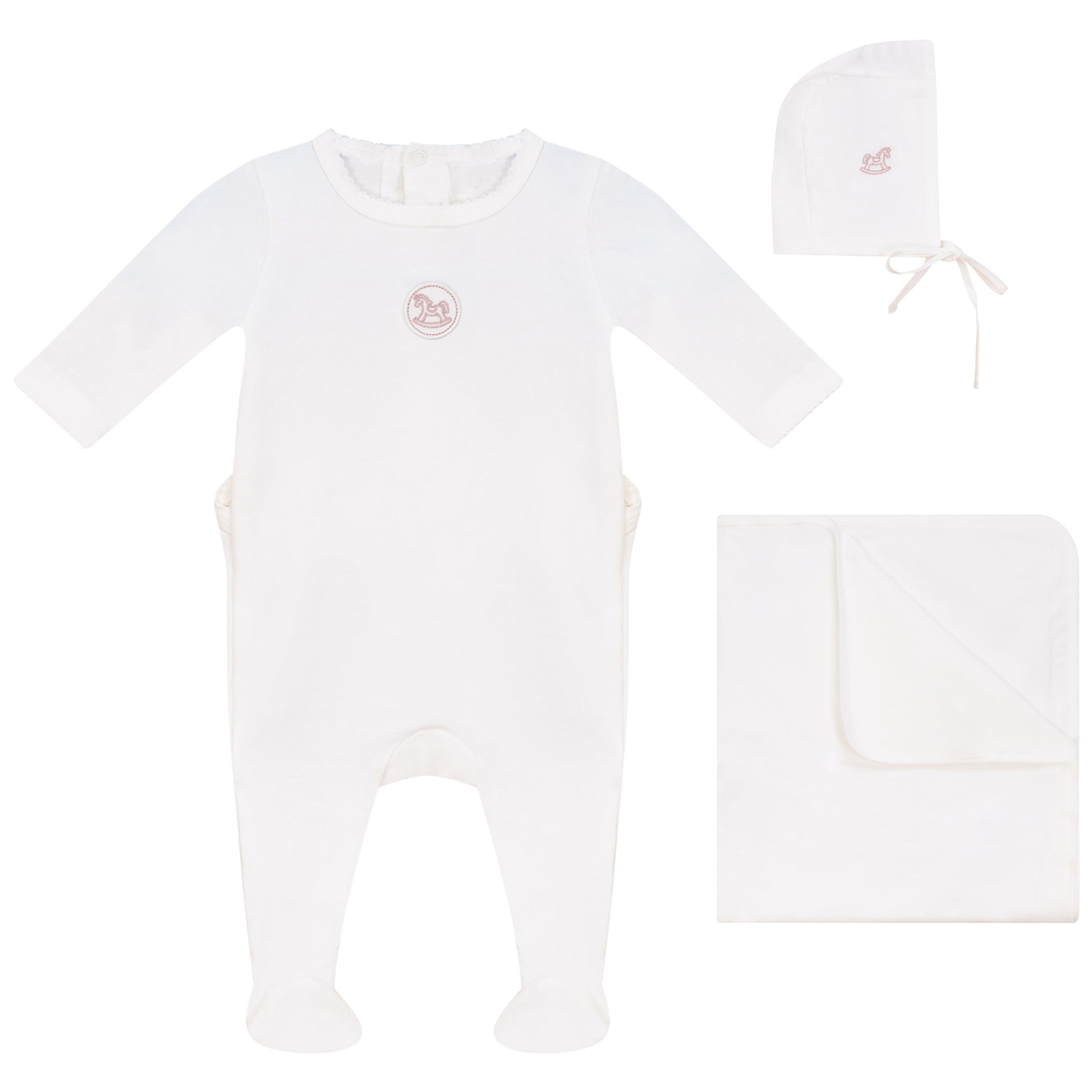 Linen Pink Logo Footie, Hat and Blanket Set White