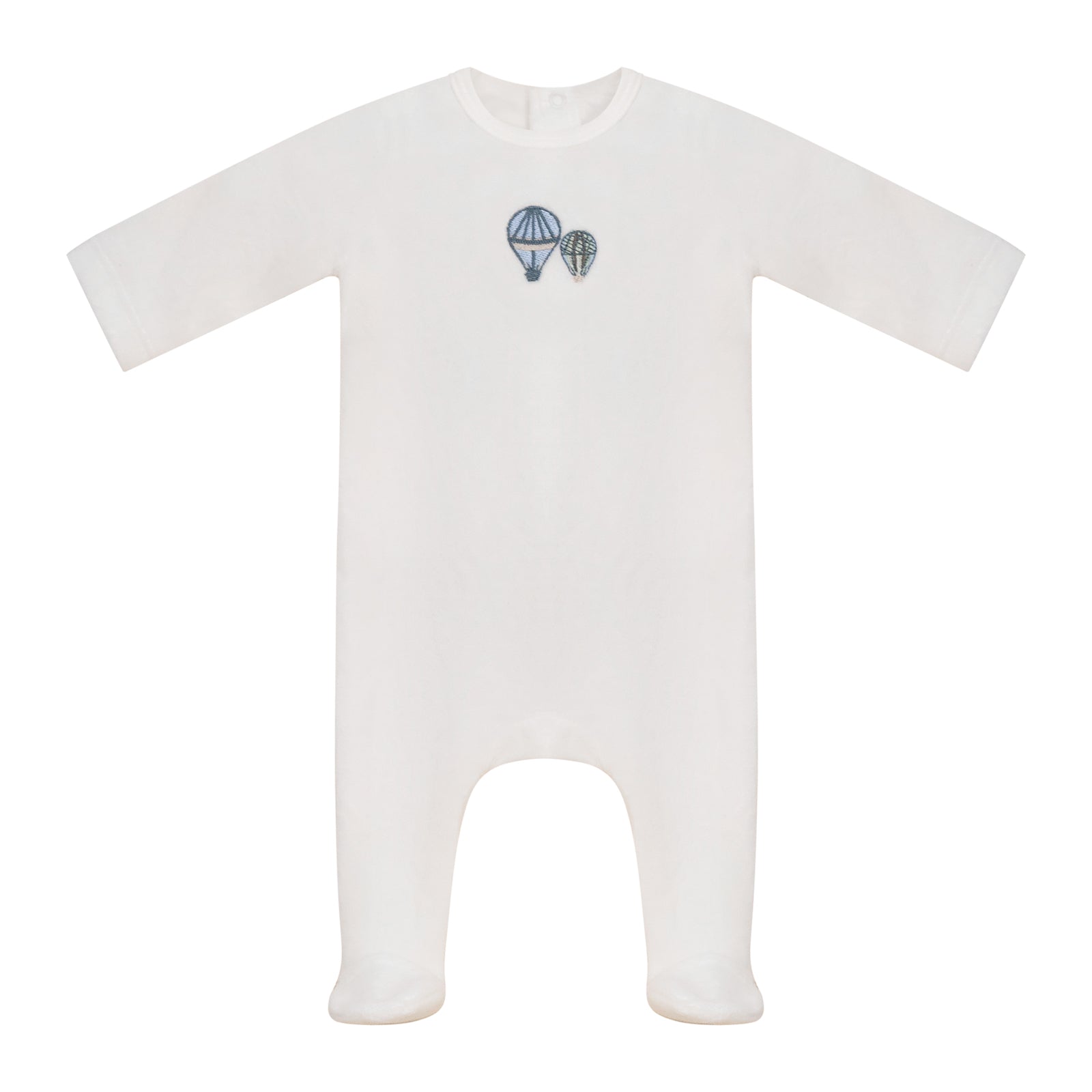 This white baby suit adorned with delightful hot balloon details, adding a charming touch to the outfit. The suit is made from soft, comfortable fabric, ensuring that your little one stays cozy throughout the day. Additionally, the footie design keeps your baby's feet warm and protected, making it a practical and stylish choice for any occasion.