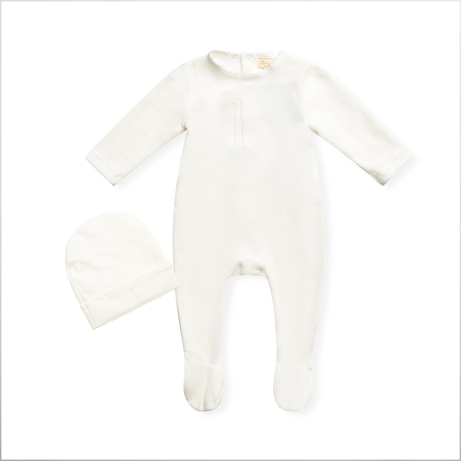 Puffed B Footie with Hat White