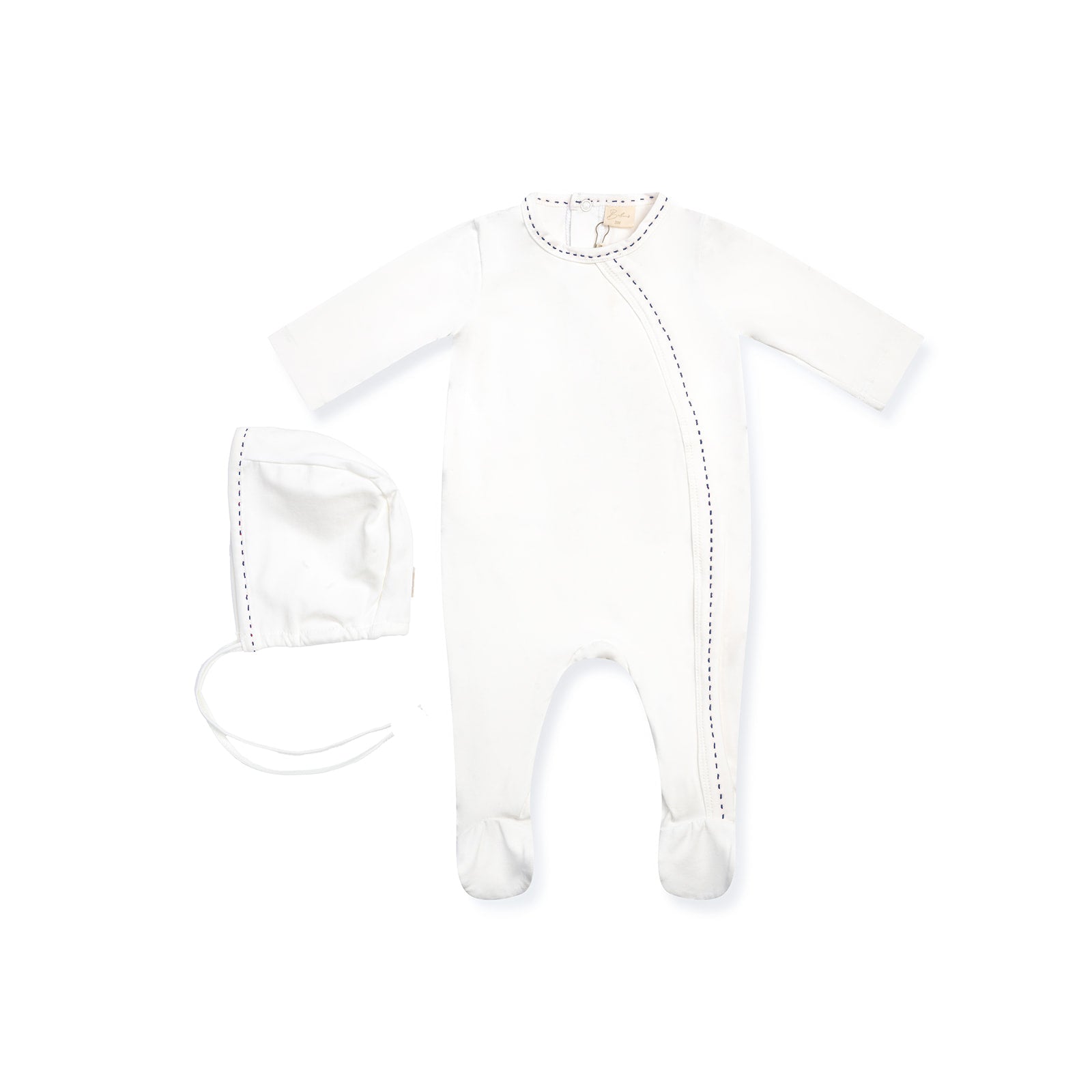 Stitching Footie with Bonnet Blue